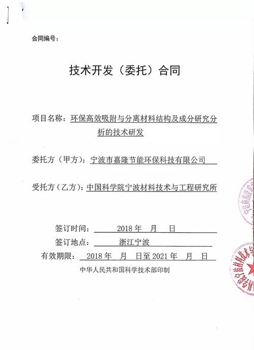 寧波市嘉隆節(jié)能環(huán)??萍加邢薰?以下簡稱“公司”)于近日與中國科學院寧波材料技術與工程研究所簽署了《環(huán)保高效吸附與分離材料結構及成分研究分析的技術研發(fā)》。合同簽署后公司與中科院進行了深入的溝通,啟動了相關項目的科研工作,現(xiàn)將合作環(huán)保高效吸附與分離材料結構及成分研究分析的技術研發(fā)項目的相關事宜公告如下: